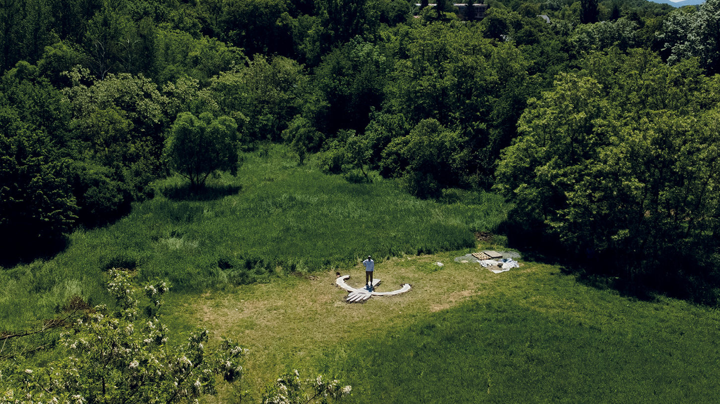 doliny s neďalekou stavbou cementárne. Využíva pomerne jednoduchý vizuálny prejav a kontrastné spájanie materiálov do čitateľného znaku, ale zároveň je významovo a emotívne bohaté. Pracuje s iróniou a sugeruje kritické environmentálne úvahy o využívaní prírodných zdrojov spájaných s urýchlenou transformáciou krajiny a zmien jej vnímania.